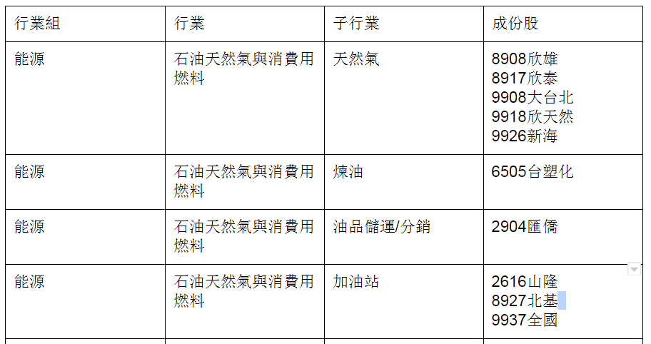 透過這樣的分類,行業組對應的是GICS的中產業分類,行業對應的是GICS的產業分類,子行業就是XQ自行分類的細產業。