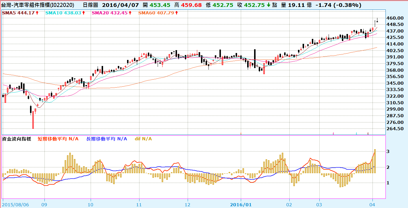 根據上述的腳本,我們以最近很熱門的汽車零組件細產業指數為例,看一下畫出來的對照圖