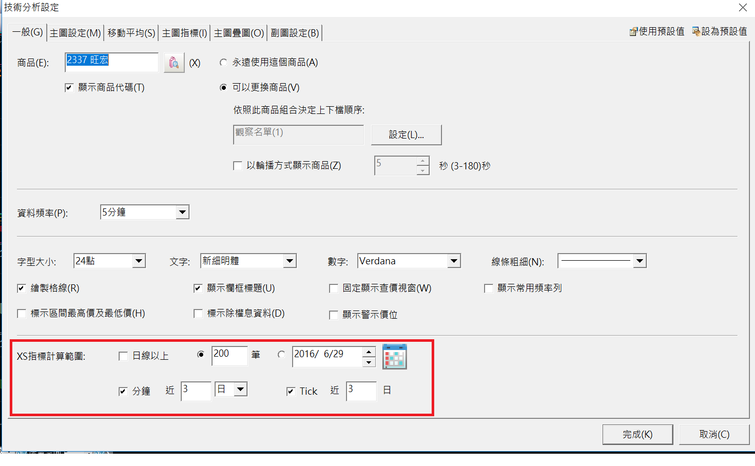這個指標腳本在計算上請在技術分析設定的第一個視窗底下,作如下圖的設定,不然會算很久線都出不來