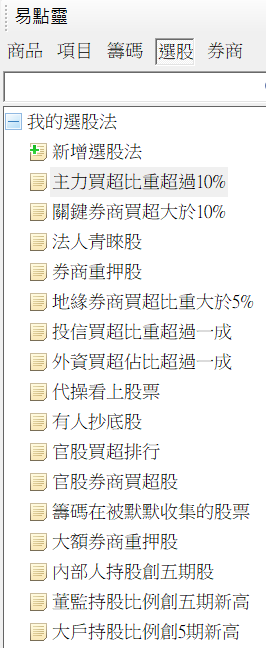 如果您進一步擁有籌碼大數據的權限,那麼就可以透過籌碼選股的功能,來透過籌碼選股,進一步挑出特定籌碼條件的個股,下面這篇有舉例說明