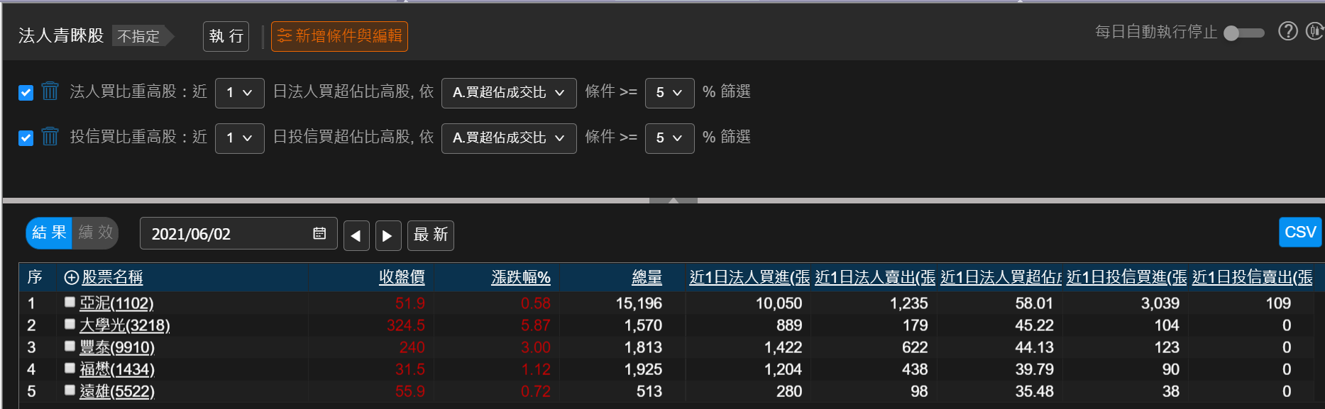 例如下圖是昨天選出來的法人青睞股