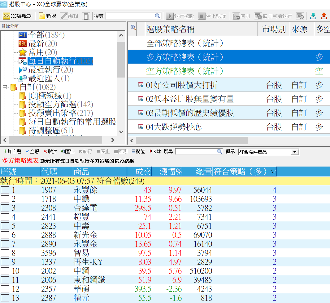 以上是我盤點XQ平台上可以使用的選股工具,給大家作參考,祝大家今天操作順利