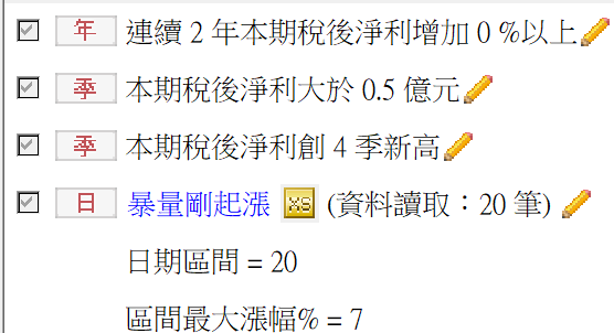 暴量起漲的股票,常是我們短多操作的標的,透過回測我們發現,如果是連續兩年獲利都成長,且最近一季獲利創近四季新高的公司,開始出現暴量起漲的現象時,短線上漲的機率會變高