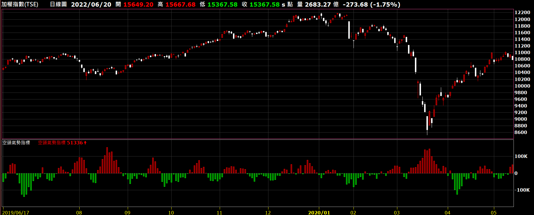 例如上圖是疫情造成的下殺時,空頭氣勢在末跌段十分氣盛,但一旦觸底反彈,空方馬上從買超變賣超