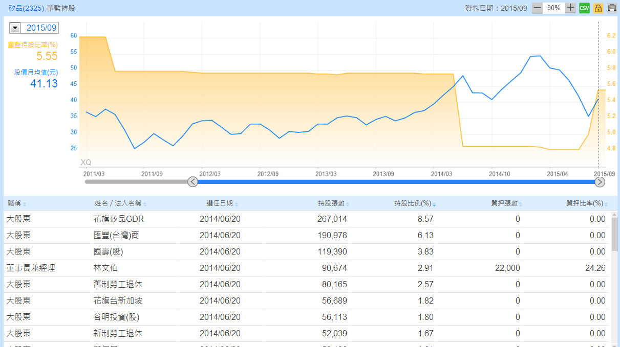 以矽品為例,如下圖,林文伯先生的持股比例才2.91%,整體董監事的持股比例才5%