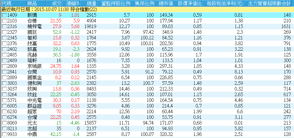 符合上面條件的股票目前台股有兩百多檔,所以我加上一條近三日主力買超超過100張,因為我相信雞蛋再密也有縫,預知春江水將暖的鴨子一定會有。