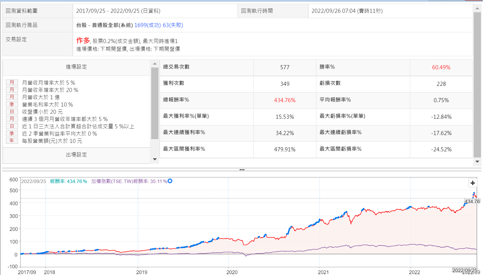 這麼多的交易次數,顯示這個選股策略有進一步優化的空間,有興趣的朋友不妨一試,不過至少前輩的確是指引我們,在運用月營收數據上,一個不錯的方向。