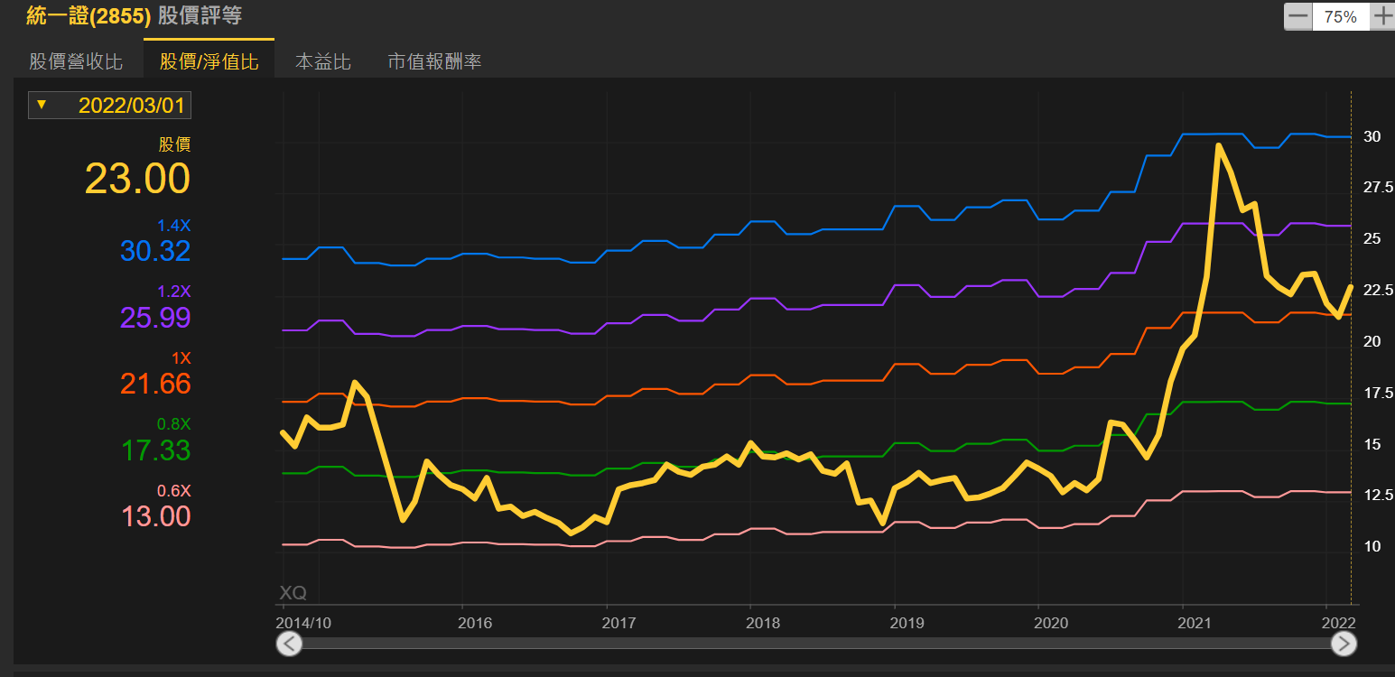 每次統一證只要股價淨值比跌到接近0.6,就差不多接近底部價了。