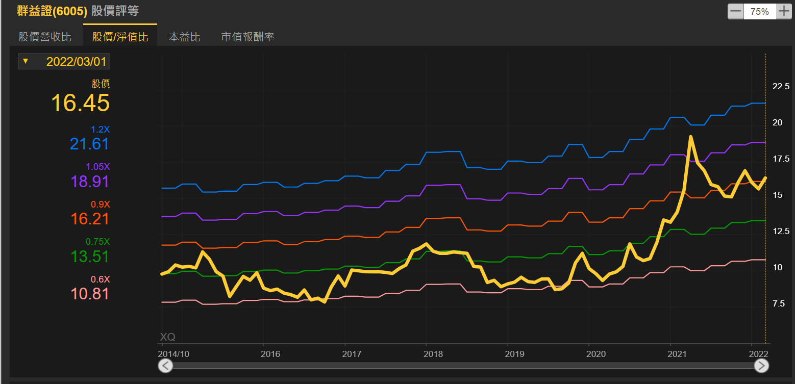 這差不多是證券業的估值標準,群益證也是有著同樣的情況: