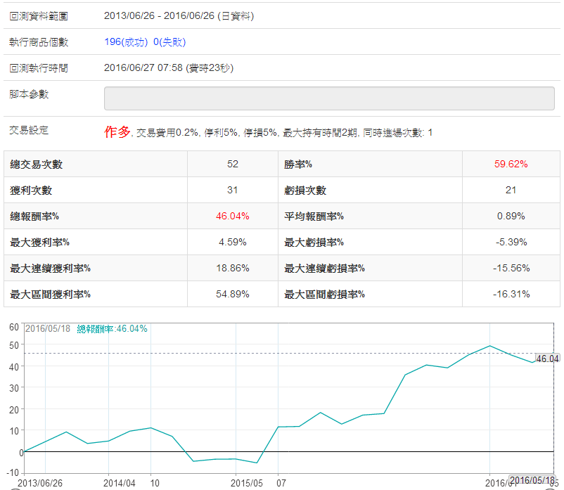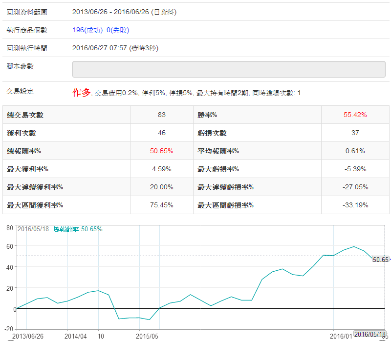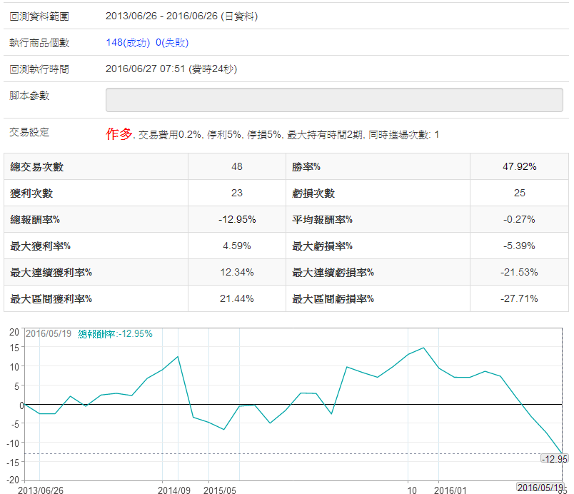 我也試著把這個腳本用權值股去跑,結果我發現效果並不好