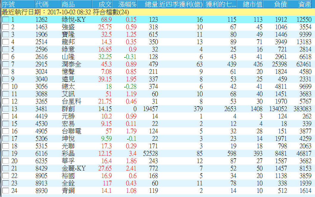 挑出來的股票如下表