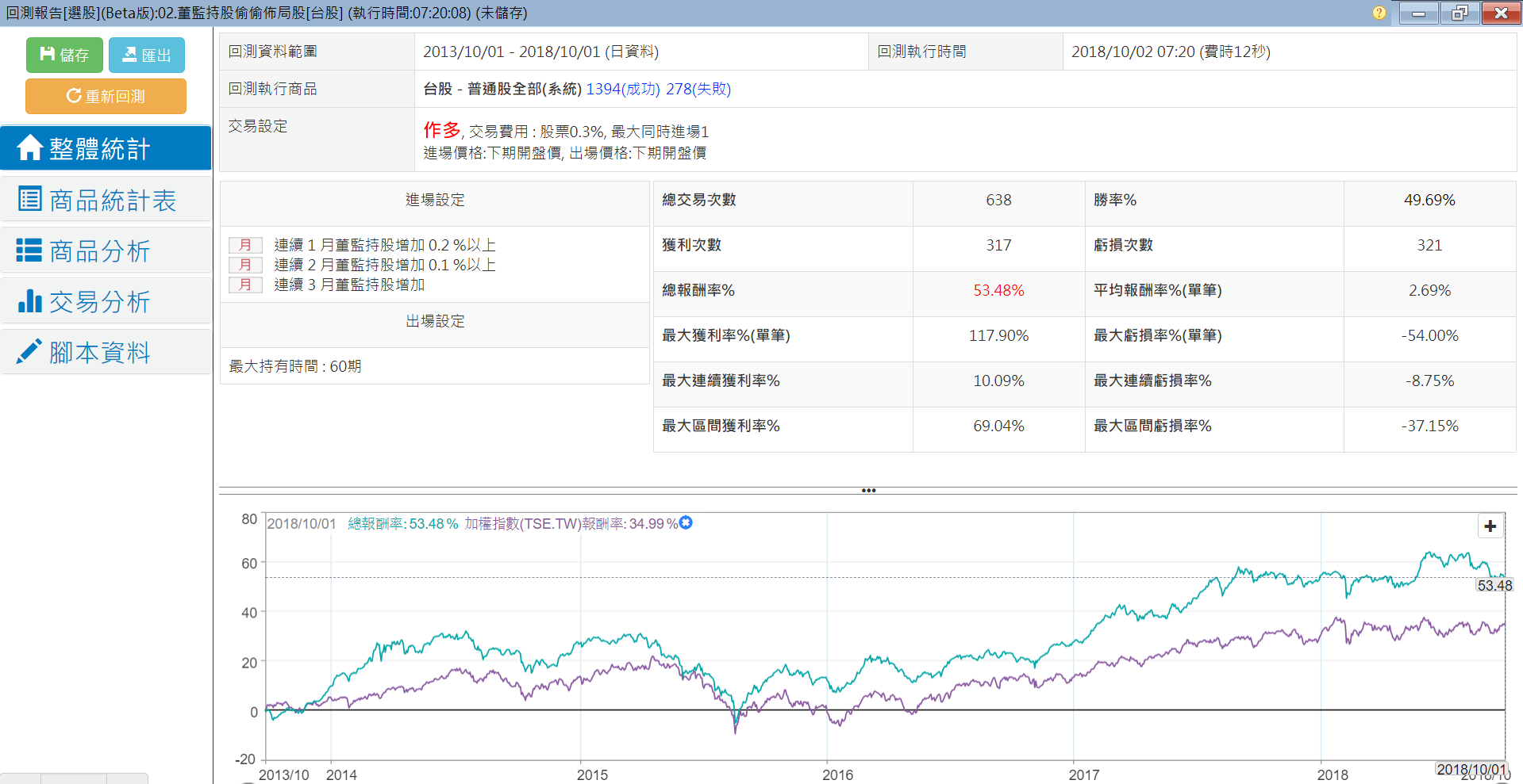 勝率是有突破五成,重點是總報酬率,平均報酬率及最大連續虧損及最大區間虧損的數字都變的很好,