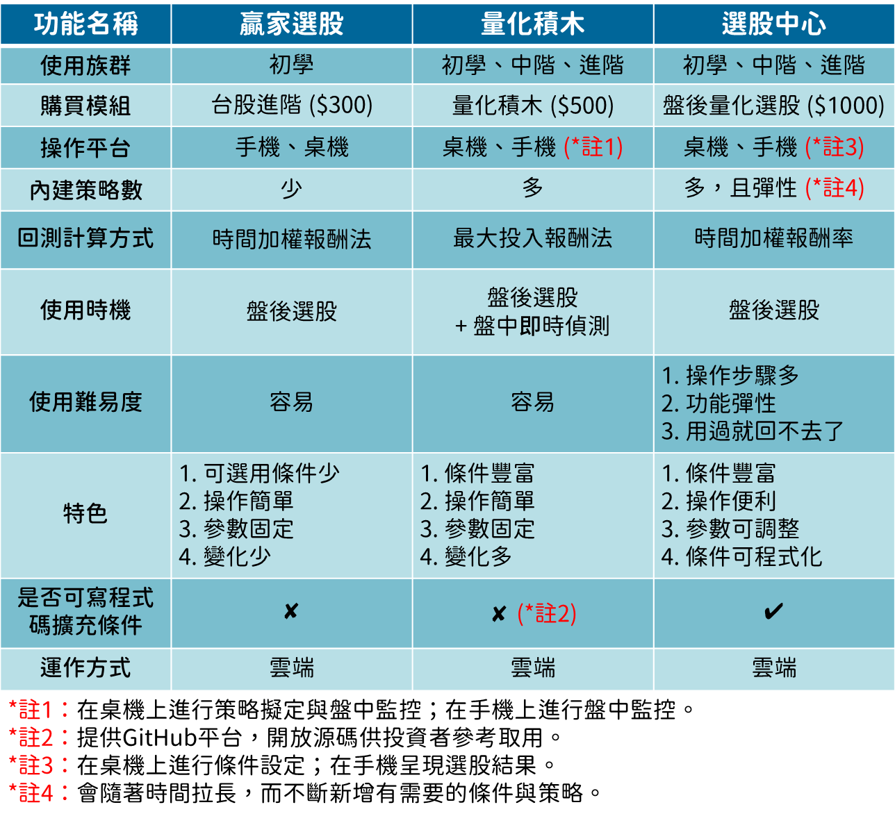如果您是一位想在交易市場上持續精進與成長的交易者,小編很建議直接使用【量化積木】或【選股中心】,這樣一來更能享受投資、研究帶來的樂趣與成長。