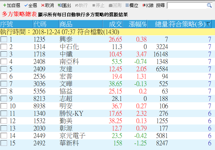 一,透過系統內建及我自己設計的選股策略,開發出各種不同的選股策略
