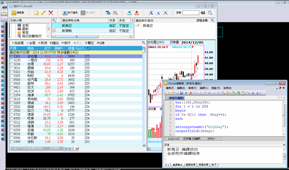 我們只要把計算出來的結果,用這個函數去印出來,然後排序,就可以看到市場上這個值的分布情況!除了把我們預像的值設成一個門檻,讓有符合的股票挑出來以外,這樣的表列方法,不僅可以知道市場上的股票多空位置,也可以很快速掌握到大盤動向!