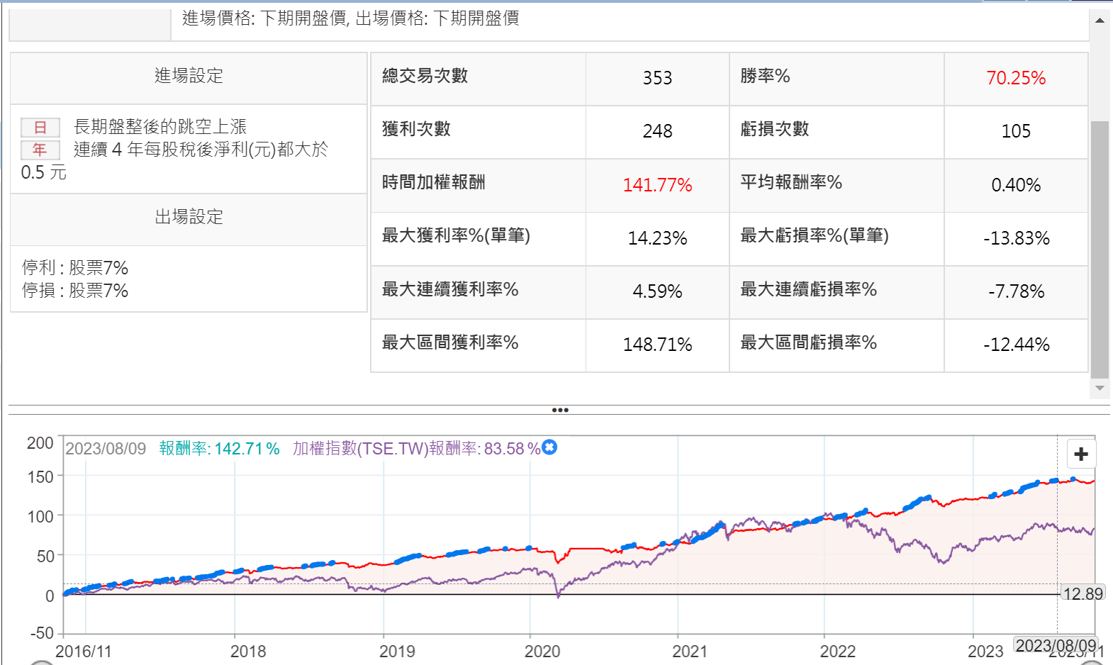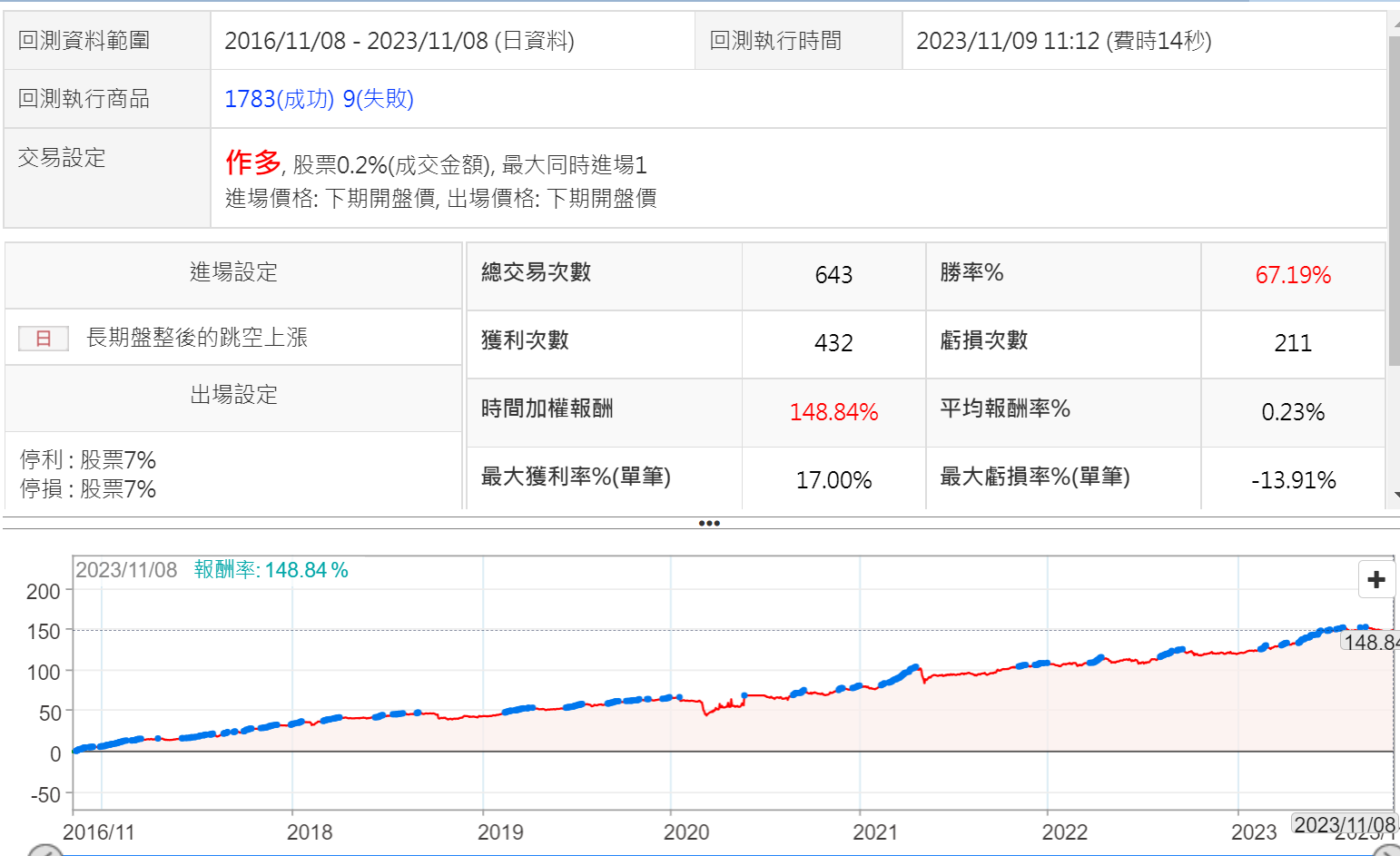 回測過去七年,停損停利都設為7%,回測報告如下: