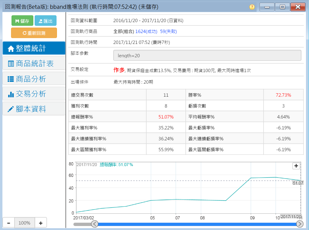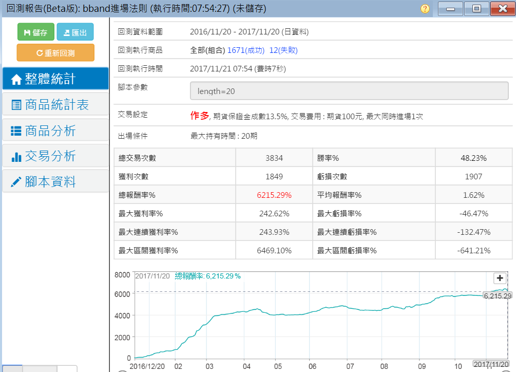 用這腳本去跑過去一年的所有股票,回測報告如下,