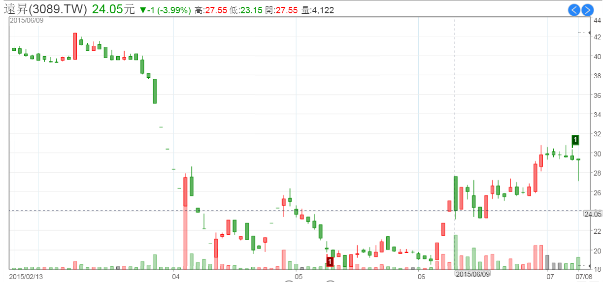 這個策略是在尋找那些股價大跌後,主力有沒有重新回補的股票,例如下面這張圖