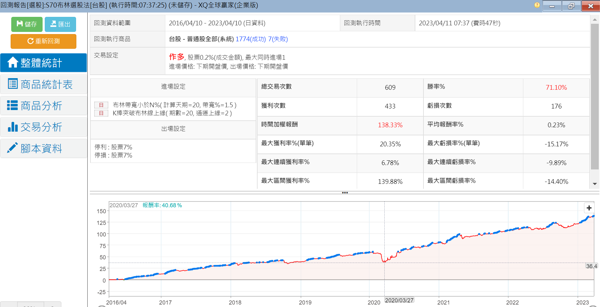 符合這兩個條件的選股策略,過去七年的回測報告如下: