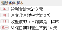 各位不妨自行調整參數,找出符合第一種條件的股票