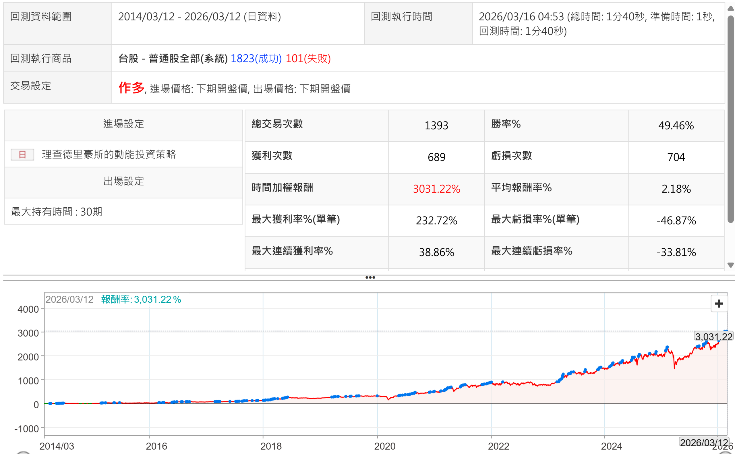 如果只持有30天,時間加權報酬更高達3031%,顯示追求這種強勢股的報酬率真的是一條可以走的道路