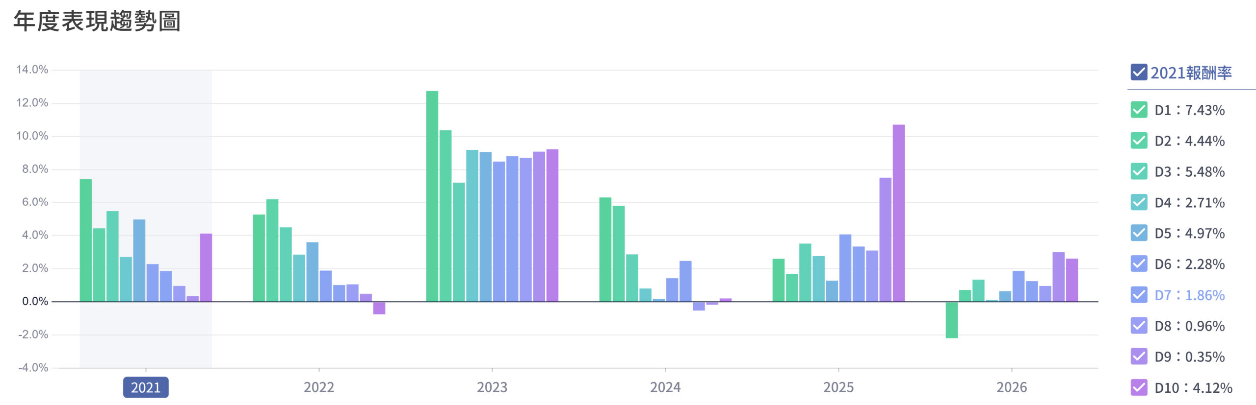 如果依年度來分,報酬率如下圖