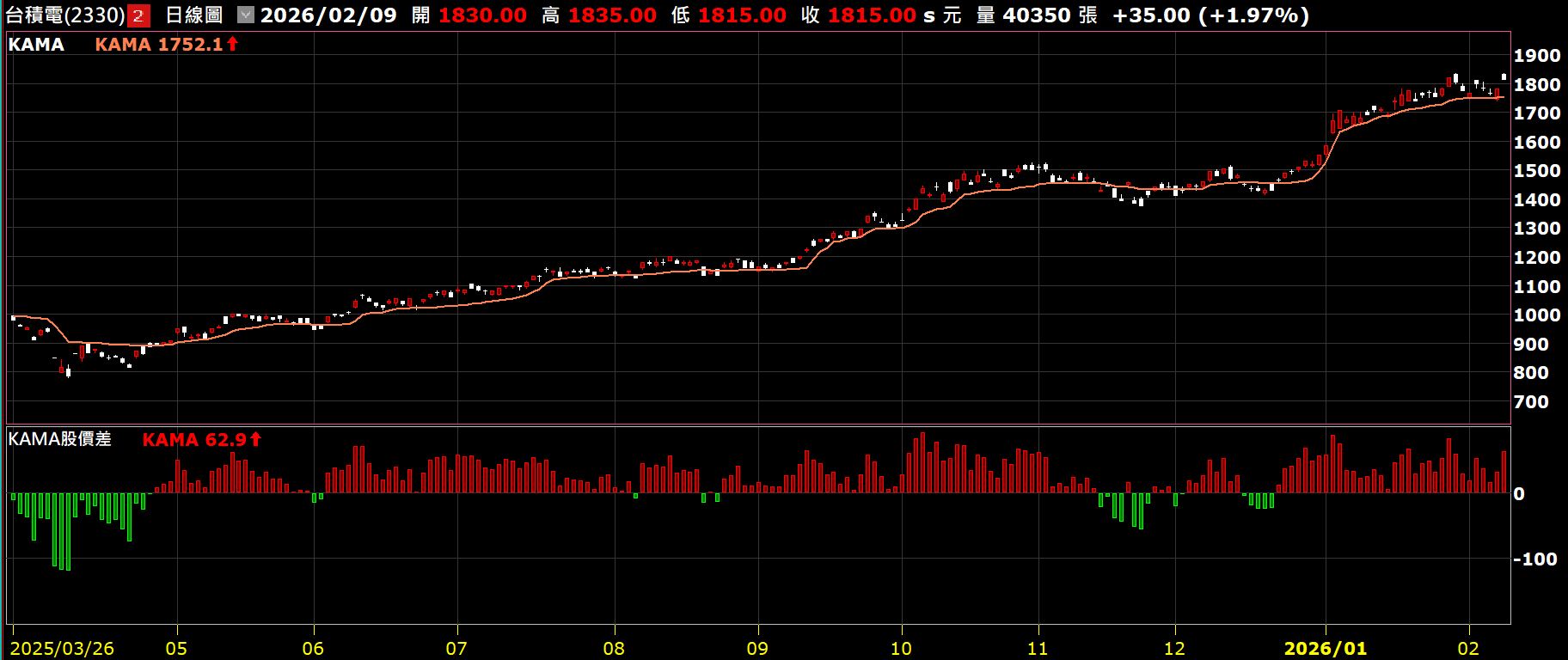 - 結果: KAMA 會突然加速,緊緊貼著價格上揚。