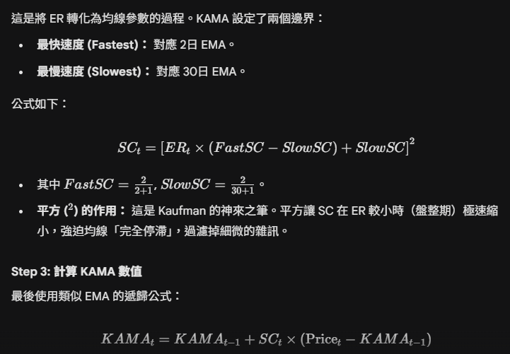 KAMA 的計算分為三個步驟,邏輯非常嚴謹:
