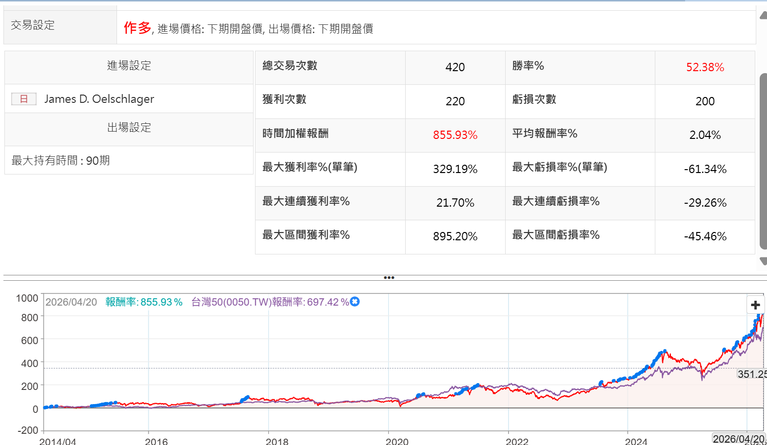 // 策略名稱:Jim Oelschlager 集中持股與長期優質成長策略