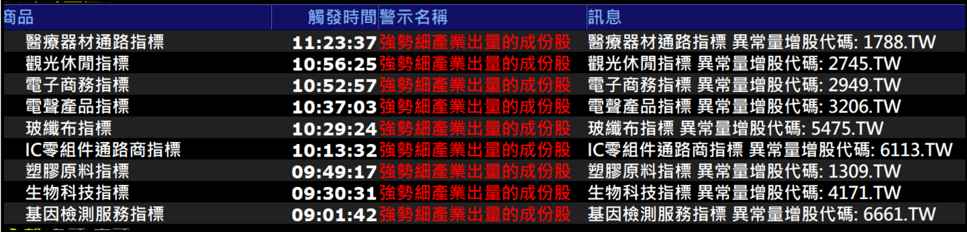 用這個腳本去跑,昨天盤中出來的訊號長這樣