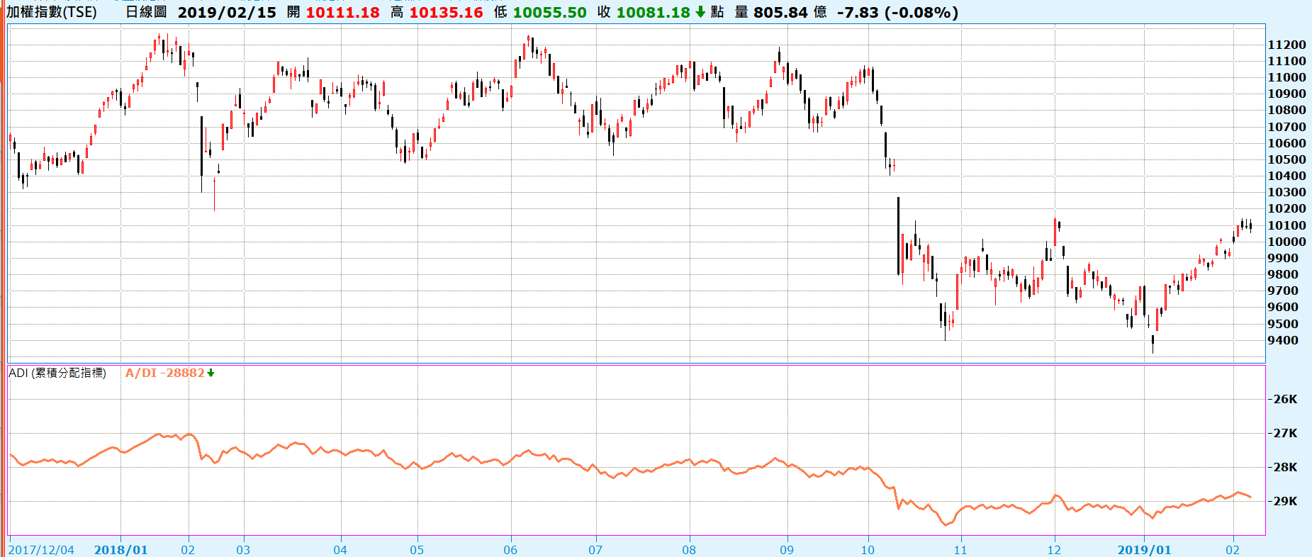今日ADI= 昨日ADI - [ Max ( 今日最高價,昨日收盤價 ) - 今日收盤價 ]