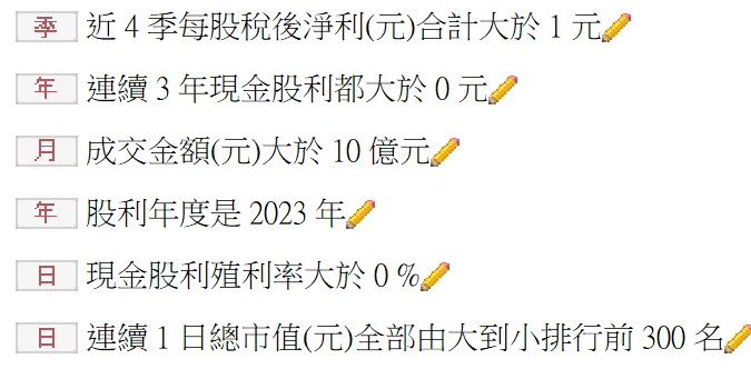 if GetSymbolFieldDate(_group[_i], "來自營運之現金流量", "Q") = value1 then begin //依最新的資料期別進行統計