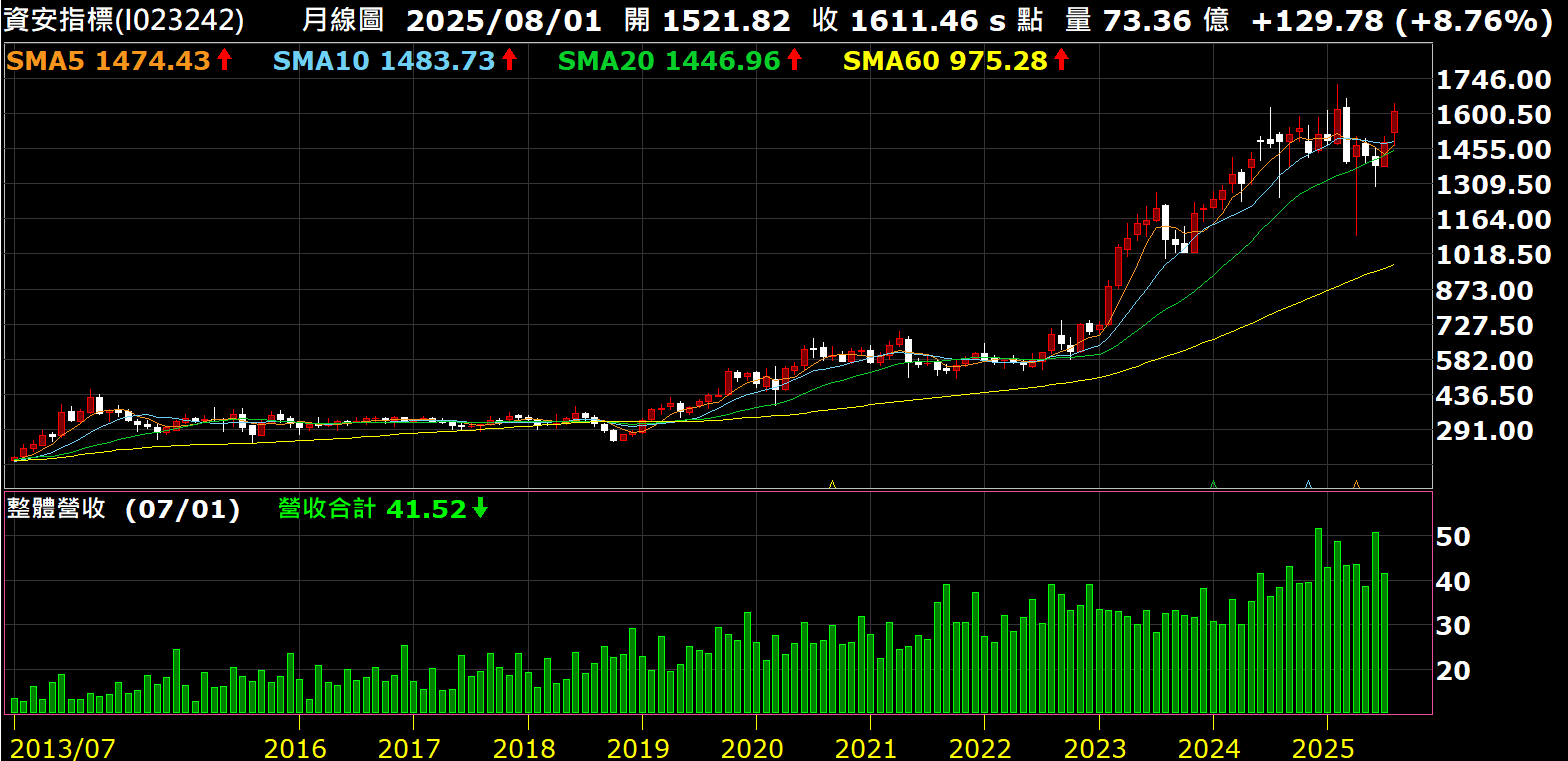 有了這個腳本,把它應用在細產業指標上,就可以畫出各細業的長期營收走勢圖。