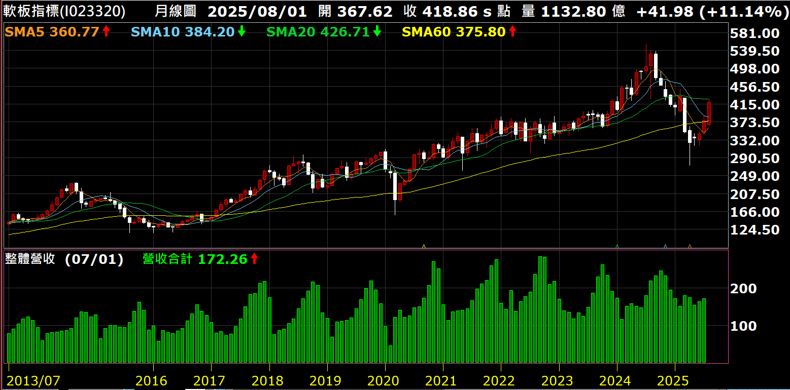 台灣的營收是每月公佈,所以可以把月K線跟營收一起對照來看