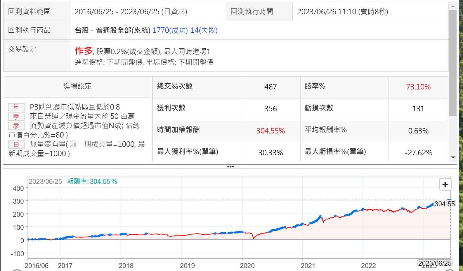 如果一檔股票的股價淨值比低於0.8,且離歷史低點區也沒有太遠,而且流動資產減流動負債後超過市值八成,代表這檔股票的下檔空間應該是愈來愈小了,如果這時候成交量又明顯回升,往往是一個長期的進場機會。