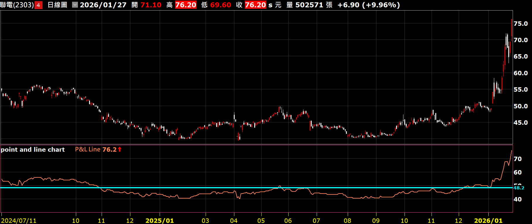 Points and Line (P&L) Chart 是 2025 年底在量化交易界與高階圖表軟體中興起的一種「雜訊過濾」圖表。它本質上是點數圖 (Point and Figure) 與折線圖 (Line Chart) 的混合體,旨在解決傳統 K 線圖在盤整期噪音過多,以及傳統點數圖「時間軸扭曲」的痛點。