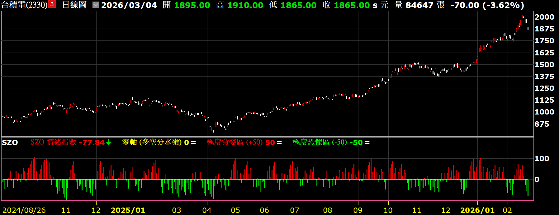 對於您的平台用戶而言,SZO 是一支非常純粹的**「情緒溫度計」**。它的曲線平滑,極度適合用來過濾假訊號與捕捉情緒的極端反轉。