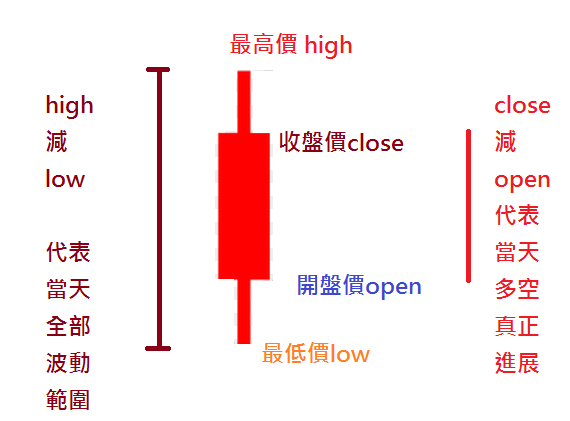 2.每天的最高價減去最低價,則是多空拉距過的最大痕跡