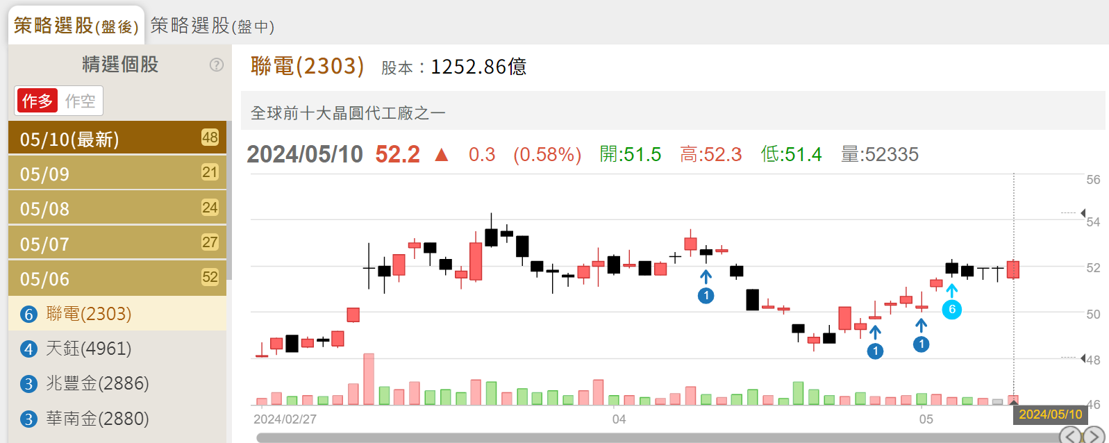 大家可以點撃 如下圖的左欄日期,看看先前策略K線的觸發訊號,培養您應用策略K線的感覺
