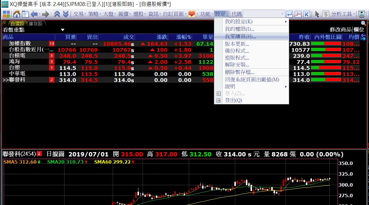 以上大概是XQ操盤高手的一些特色,一些較細的隱藏版功能容後日後再一一介紹,所以有券商帳號可以認證的朋友,歡迎用券商帳號來認證,沒有帳號可以認證的朋友,下面是購買加值型服務的位置