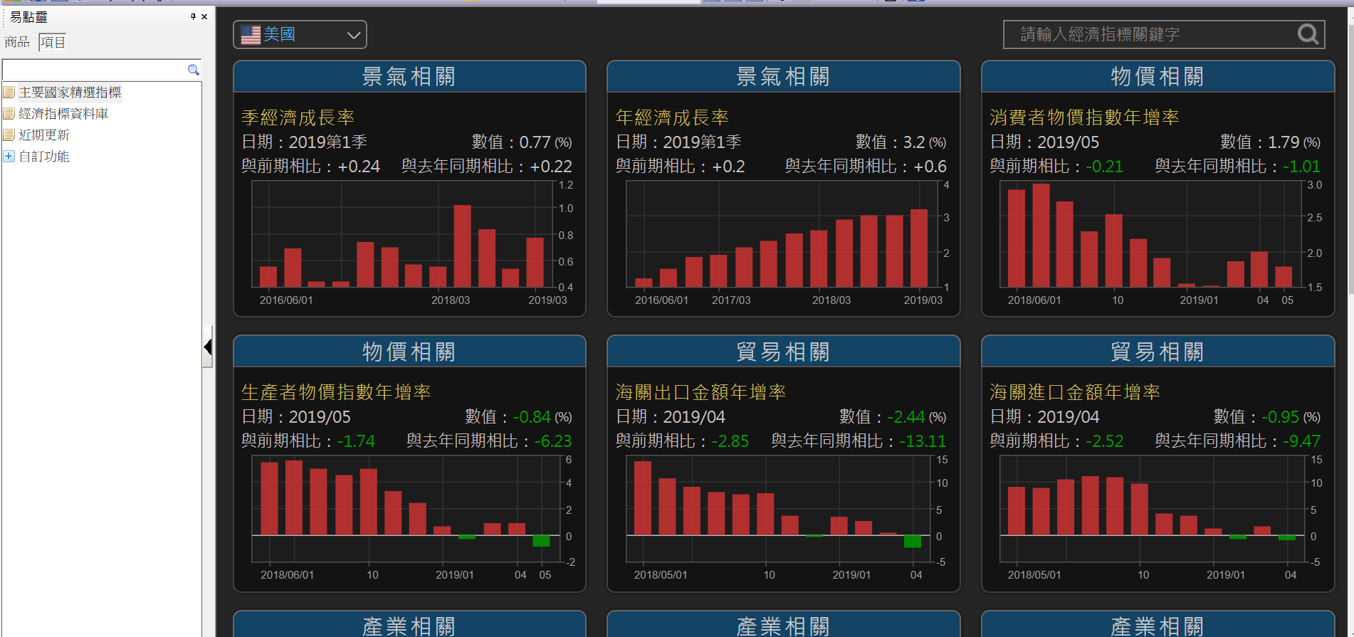 XQ操盤高手收集了不少國家的經濟指標,放在經濟指標資料庫這個項目底下,方便大家透過最新的經濟指標,了解各國的經濟情況,這個功能對於投資基金或ETF的投資人,應該是派得上用場。
