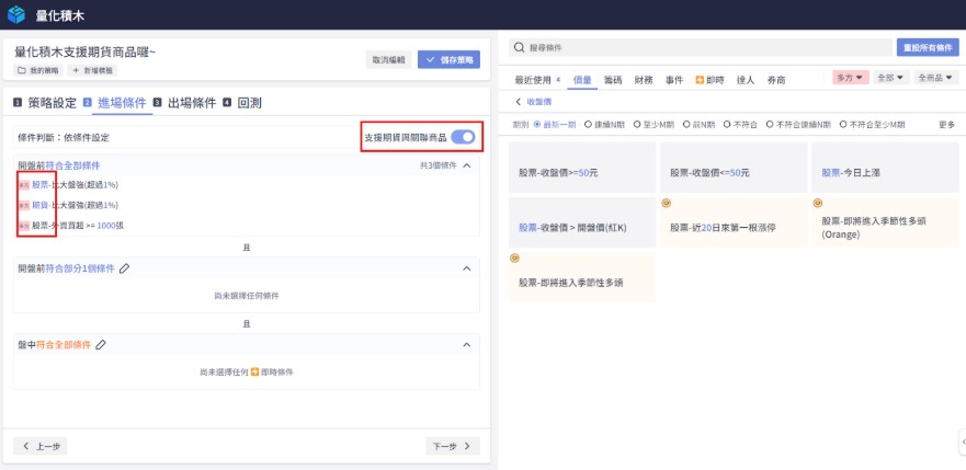 這次量化積木新增的 期貨支援功能,讓你能真正做到: