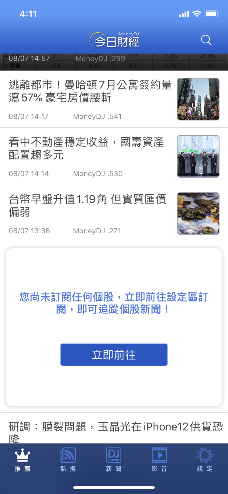 成功訂閱後,再次進入首頁,「為您推薦」的「個股追蹤」畫面就會出現了