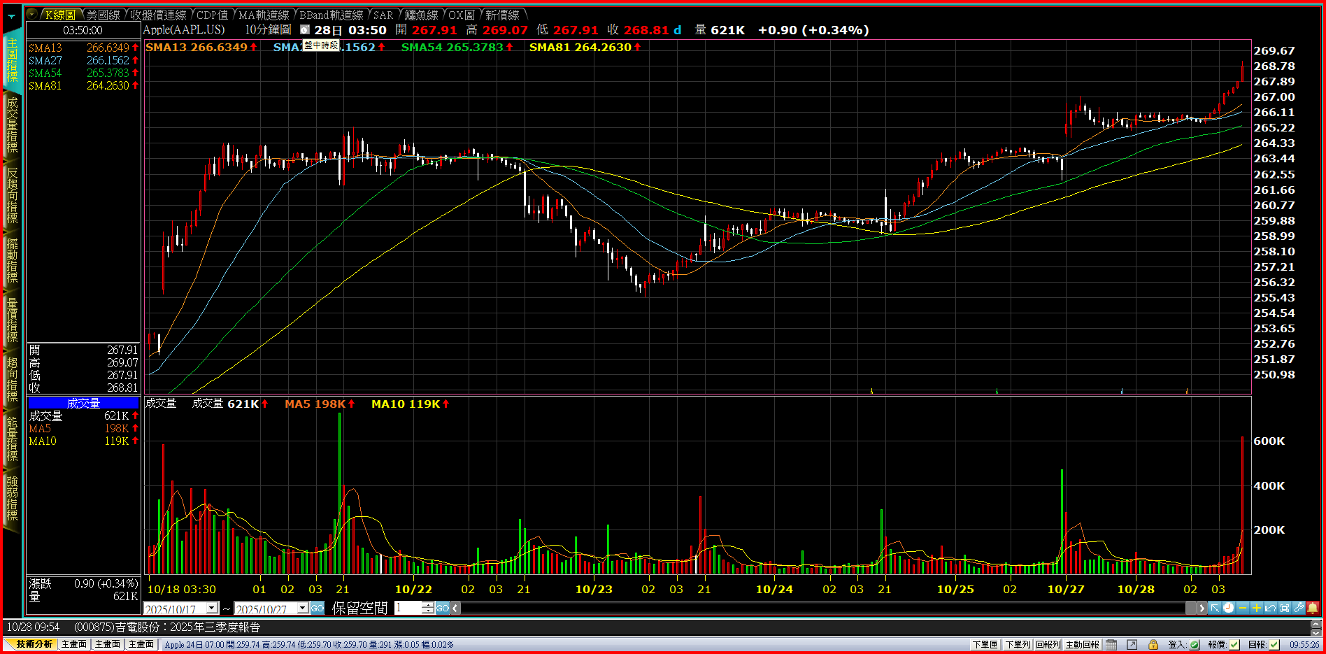 • 技術線圖: 使用者可以點選線圖上方頻率旁的 時鐘圖示 選項,來切換「正常交易區段」以及「包含盤前盤後的交易區段」。