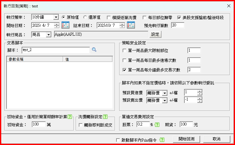 • 策略雷達 / 自動交易策略 / 回測: 在設定介面中,使用者可以在 設定頻率 處,勾選是否要啟動「美股支援盤前盤後時段」。